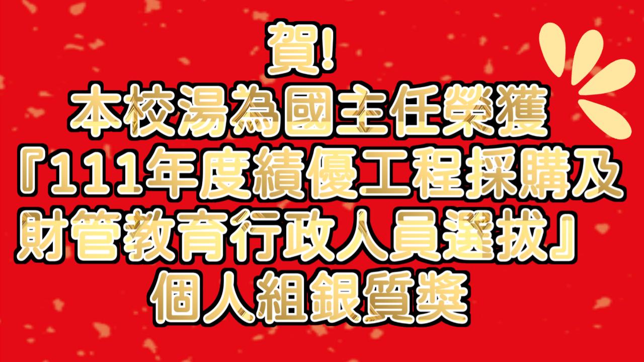 賀! 本校湯為國主任榮獲『臺北市111年度績優工程採購及財管教育行政人員』選拔個人組銀質獎!