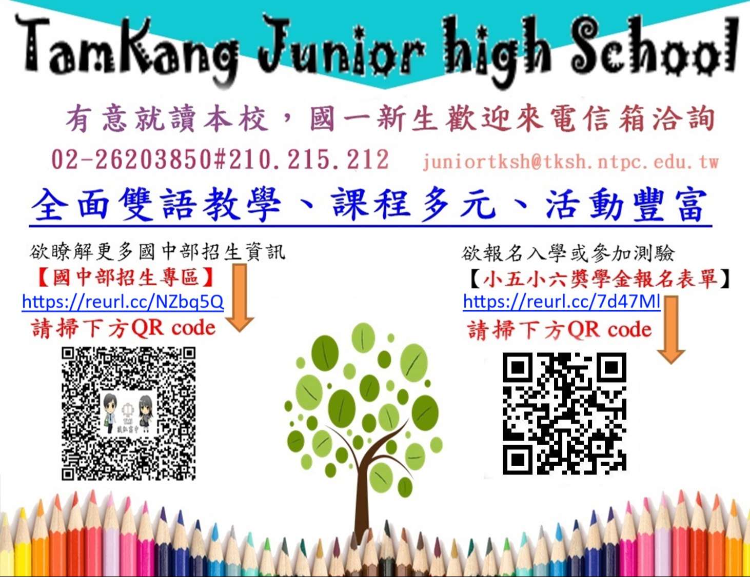 一、新北市私立淡江高級中學訂於114年 2月 28日(星期五)上午舉辦小五小六獎學金測驗暨家長說明會,歡迎本校小五、小六學生及家長報 名參加。活動報名網址:https://reurl.cc/7d47Ml